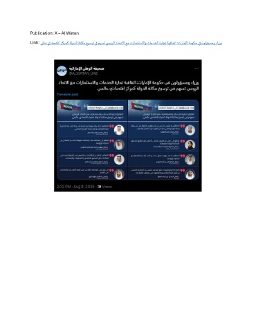 Publication: X – Al Watan Link: يلماع يداصتقا زكرمك ةلودلا ةناكم خيسرت يف مهست ي سورلا داحتلاا عم تارامثتسلااو تامدخلا ةراجت ةيقافتا :تاراملإا ةموكح يف نولوؤسمو ءارزو