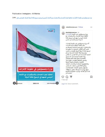 Publication: Instagram – Al Wahda Link: يلماع يداصتقا زكرمك ةلودلا ةناكم خيسرت يف مهست ي سورلا داحتلاا عم تارامثتسلااو تامدخلا ةراجت ةيقافتا :تاراملإا# ةموكح يف نولوؤسمو ءارزو