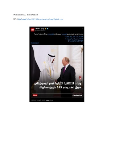Publication: X – Emirates 24 Link: ايلماع ايداصتقا ازكرم تاراملإا# ةناكم خسرت ايسور# عم ةيراجتلا ةيقافتلاا :ءارزو