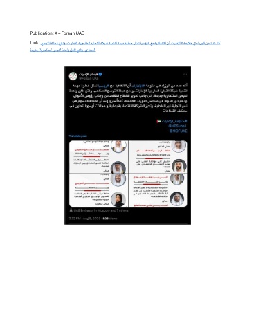Publication: X – Forsan UAE Link: عسوتلا ةلجع عفدو ،تاراملإل ةيجراخلا ةراجتلا ةكبش ةيمنتل ةمهم ةوطخ لثمت ايسور# عم ةيقافتلاا نأ تاراملإا# ةموكح يف ءارزولا نم ددع دك ةديدج ةيرامثتسا صرفل ةدعاو قافآ حتفو ،يعانصلا