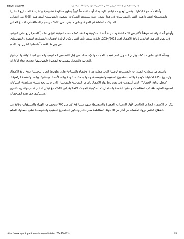 ،ﺔﻄﺳﻮﺘﻤﻟاو ةﺮﯿﻐﺼﻟا ﻊﻳرﺎﺸﻤﻟاو لﺎﻤﻋﻷا ةدﺎﻳﺮﻟ نﺎﻜﻣ ﻞﻀﻓأ ﺎﮫﻧﺄﺑ ﺎﮫﻔﻨﺻ يﺬﻟاو ،2024/2025 مﺎﻌﻟ لﺎﻤﻋﻷا ةدﺎﻳﺮﻟ ﻲﻤﻟﺎﻌﻟا ﺪﺻﺮﻤﻟا ﺮﻳﺮﻘﺗ ﻲﻓ