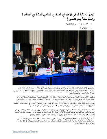 يذلا ،ةطسوتملاو ةريغصلا عيراشملل لولأا يملاعلا يرازولا عامتجلاا يف تاراملإا ةلود تكراش /ماو /سطسغأ 6 يف يبظوبأ