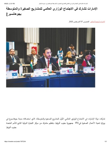 8/8/25, 2:35 PM نطوﻟا ةدﯾرﺟ › غرﺑﺳﻧﺎھوﺟﺑ ﺔطﺳوﺗﻣﻟاو ةرﯾﻐﺻﻟا ﻊﯾرﺎﺷﻣﻠﻟ ﻲﻣﻟﺎﻌﻟا يرازوﻟا عﺎﻣﺗﺟﻻا ﻲﻓ كرﺎﺷﺗ تارﺎﻣﻹا