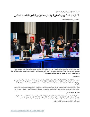 ةنيدم هتفاضتسا يذلا ،ةطسوتملاو ةريغصلا عيراشملل لولأا يملاعلا يرازولا عامتجلاا يف اهتكراشم للاخ ،تاراملإا ةلود تدكأ