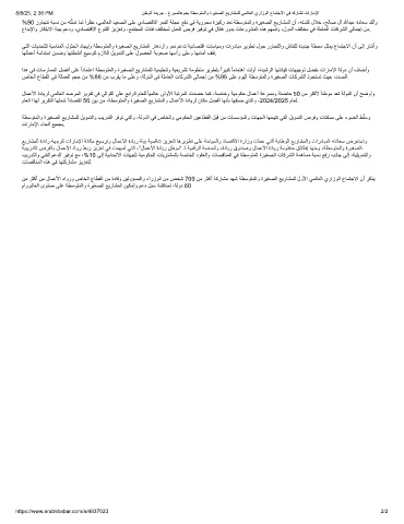 %90 زوﺎﺟﺗﺗ ﺔﺑﺳﻧ نﻣ ﮫﻠ ّ ﺛﻣﺗ ﺎﻣﻟ ًارظﻧ ،ﻲﻣﻟﺎﻌﻟا دﯾﻌﺻﻟا ﻰﻠﻋ يدﺎﺻﺗﻗﻻا وﻣﻧﻟا ﺔﻠﺟﻋ ﻊﻓد ﻲﻓ ﺔﯾروﺣﻣ ةزﯾﻛر دﻌﺗ ﺔطﺳوﺗﻣﻟاو ةرﯾﻐﺻﻟا ﻊﯾرﺎﺷﻣﻟا نأ ،ﮫﺗﻣﻠﻛ لﻼﺧ ،ﺢﻟﺎﺻ لآ ﷲدﺑﻋ ةدﺎﻌﺳ دﻛأو