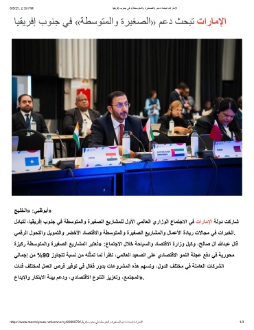 لدﺎﺑﺗﻟ ،ﺎﯾﻘﯾرﻓإ بوﻧﺟ ﻲﻓ ﺔطﺳوﺗﻣﻟاو ةرﯾﻐﺻﻟا ﻊﯾرﺎﺷﻣﻠﻟ لوﻷا ﻲﻣﻟﺎﻌﻟا يرازوﻟا عﺎﻣﺗﺟﻻا ﻲﻓ تارﺎﻣﻹا ﺔﻟود تﻛرﺎﺷ