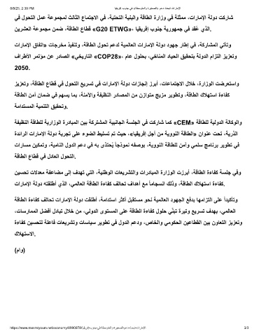 زﯾزﻌﺗو ،ﺔﻗﺎطﻟا عﺎطﻗ ﻲﻓ لوﺣﺗﻟا ﻊﯾرﺳﺗ ﻲﻓ تارﺎﻣﻹا ﺔﻟود تازﺎﺟﻧإ زرﺑأ ،تﺎﻋﺎﻣﺗﺟﻻا لﻼﺧ ،ةرازوﻟا تﺿرﻌﺗﺳاو