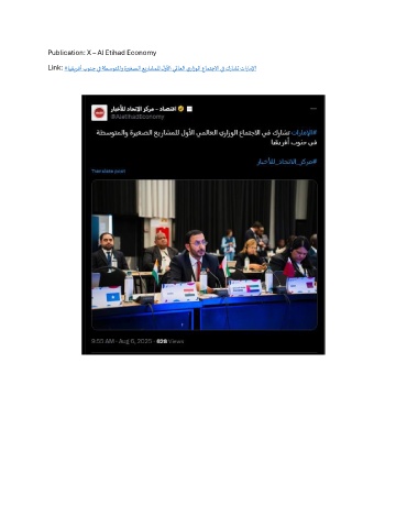 Publication: X – Al Etihad Economy Link: #ايقيرفأ بونج يف ةطسوتلماو ةريغصلا عيراشملل لولأا يلماعلا يرازولا عامتجلاا يف كراشت تاراملإا