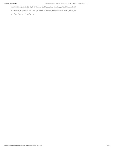 ﺎﻣ ،ﻦﺤﺸﻟا ﺔﻛﺮﺣ ﻲﻟﺎﻤﺟإ ﻦﻣ %67 ﻮﺤﻧ ﻰﻠﻋ ﺔﯿﻨطﻮﻟا تﻼﻗﺎﻨﻟا تذﻮﺤﺘﺳاو ،2024 ﻦﻣ ﺎﮭﺴﻔﻧ ةﺮﺘﻔﻟﺎﺑ ﺔﻧرﺎﻘﻣ