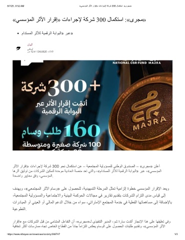 8/7/25, 9:52 AM «ﻲﺳﺳؤﻣﻟا رﺛﻷا رارﻗإ» تاءارﺟﻹ ﺔﻛرﺷ 300 لﺎﻣﻛﺗﺳا :«ىرﺟﻣ»