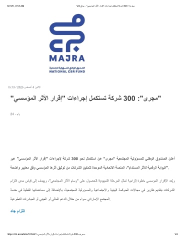 8/7/25, 9:53 AM "24 ﻊﻗوﻣ - "ﻲﺳﺳؤﻣﻟا رﺛﻷا رارﻗإ" تاءارﺟإ لﻣﻛﺗﺳﺗ ﺔﻛرﺷ 300 :"ىرﺟﻣ