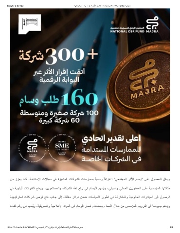 8/7/25, 9:53 AM "24 ﻊﻗوﻣ - "ﻲﺳﺳؤﻣﻟا رﺛﻷا رارﻗإ" تاءارﺟإ لﻣﻛﺗﺳﺗ ﺔﻛرﺷ 300 :"ىرﺟﻣ