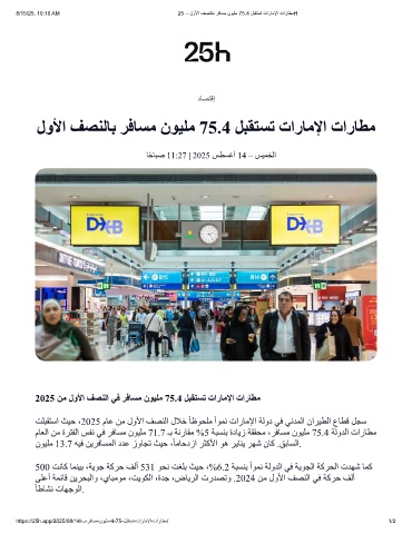 8/15/25, 10:16 AM 25 – لوﻷا فﺻﻧﻟﺎﺑ رﻓﺎﺳﻣ نوﯾﻠﻣ 75.4 لﺑﻘﺗﺳﺗ تارﺎﻣﻹا تارﺎطﻣH