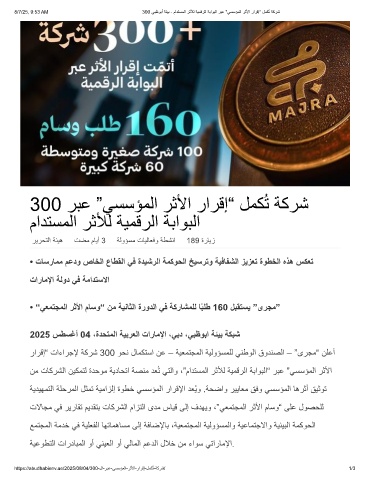 8/7/25, 9:53 AM 300 ﻲﺑظوﺑأ ﺔﺋﯾﺑ - مادﺗﺳﻣﻟا رﺛﻸﻟ ﺔﯾﻣﻗرﻟا ﺔﺑاوﺑﻟا رﺑﻋ "ﻲﺳﺳؤﻣﻟا رﺛﻷا رارﻗإ" لﻣﻛُﺗ ﺔﻛرﺷ