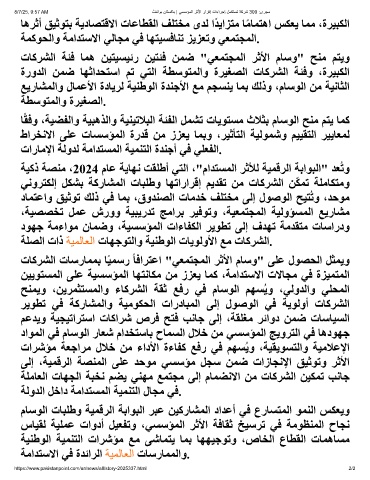 تﺎﻛﺮﺸﻟا تﺎﺳرﺎﻤﻤﺑ ﺎًﯿﻤﺳر ًﺎﻓاﺮﺘﻋا "ﻲﻌﻤﺘﺠﻤﻟا ﺮﺛﻷا مﺎﺳو" ﻰﻠﻋ لﻮﺼﺤﻟا ﻞﺜﻤﯾو