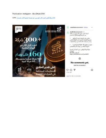 Publication: Instagram - Abu Dhabi ENV ُ Link: مادتسلما رثلأل ةيمقرلا ةباوبلا ربع ”ي سسؤلما رثلأا رارقإ“ لمكت ةكرش 300