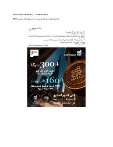 Publication: Facebook – Abu Dhabi ENV ُ Link: مادتسلما رثلأل ةيمقرلا ةباوبلا ربع ”ي سسؤلما رثلأا رارقإ“ لمكت ةكرش 300