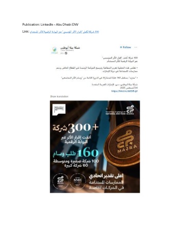 Publication: LinkedIn – Abu Dhabi ENV ُ Link: مادتسلما رثلأل ةيمقرلا ةباوبلا ربع ”ي سسؤلما رثلأا رارقإ“ لمكت ةكرش 300