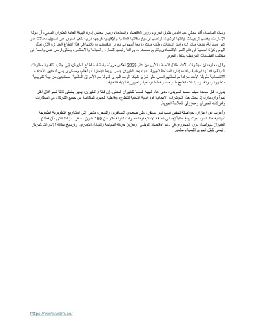 تاراطم ةيسفانت بناج ىلإ ،ناريطلا عاطق ةمادتساو ةنورم سكعت 2025 ماع نم لولأا فصنلا للاخ ءادلأا تارشؤم نإ ،هيلاعم لاقو