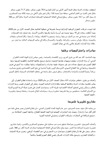 ،2025 مﺎﻋ ﻦﻣ لوﻷا ﻒﺼﻨﻟا لﻼﺧ ﺔﻴﻤﻟﺎﻌﻟا ﺎﻬﺘﺒﺷ ﻓ ًﺎﻇﻮﺤﻠﻣ ًﺎﻌﺳﻮﺗ ﺔﻴﺗارﺎﻣﻹا ﺔﻴﻨﻃﻮﻟا ناﺮﻴﻄﻟا تﺎﻛﺮﺷ تﺪﻬﺷ ﺎﻤﻛ