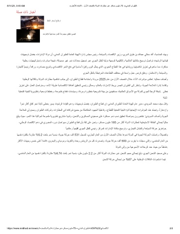 ًاوﻣﻧ رﺛﻛأ قﺎﻓآ وﺣﻧ ﺔﺗﺑﺎﺛ ﻰطﺧﺑ رﯾﺳﯾ ،ةدﯾﺷرﻟا ةدﺎﯾﻘﻟا مﻋدو تﺎﮭﯾﺟوﺗ لﺿﻔﺑ ،نارﯾطﻟا عﺎطﻗ نإ :ﻲﻧدﻣﻟا نارﯾطﻠﻟ ﺔﻣﺎﻌﻟا ﺔﺋﯾﮭﻟا مﺎﻋ رﯾدﻣ ،يدﯾوﺳﻟا دﻣﺣﻣ فﯾﺳ لﺎﻗو
