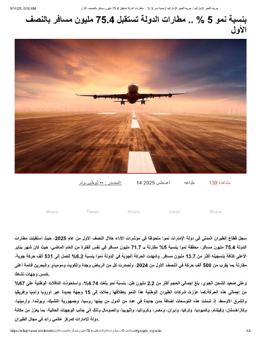 8/14/25, 9:50 AM لوﻷا فﺻﻧﻟﺎﺑ رﻓﺎﺳﻣ نوﯾﻠﻣ 75.4 لﺑﻘﺗﺳﺗ ﺔﻟودﻟا تارﺎطﻣ .. % 5 وﻣﻧ ﺔﺑﺳﻧﺑ | ﮫﯾﺗارﺎﻣﻹا رﺟﻔﻟا ةدﯾرﺟ | ﮫﯾﺗارﺎﻣﻹا رﺟﻔﻟا ةدﯾرﺟ