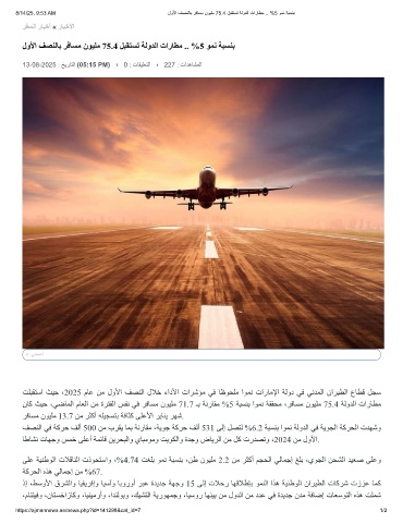 8/14/25, 9:53 AM لوﻷا فﺻﻧﻟﺎﺑ رﻓﺎﺳﻣ نوﯾﻠﻣ 75.4 لﺑﻘﺗﺳﺗ ﺔﻟودﻟا تارﺎطﻣ .. %5 وﻣﻧ ﺔﺑﺳﻧﺑ