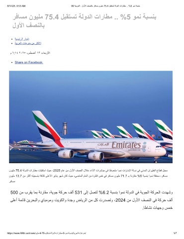 8/14/25, 9:53 AM 99 ﺔﯾﺑرﻌﻟا - لوﻷا فﺻﻧﻟﺎﺑ رﻓﺎﺳﻣ نوﯾﻠﻣ 75.4 لﺑﻘﺗﺳﺗ ﺔﻟودﻟا تارﺎطﻣ .. %5 وﻣﻧ ﺔﺑﺳﻧﺑ