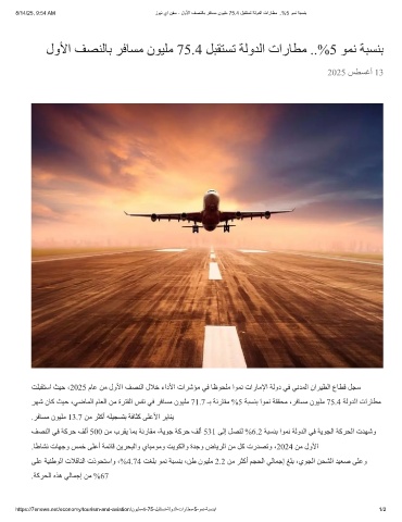 لوﻷا ﻒﺼﻨﻟﺎﺑ ﺮﻓﺎﺴﻣ نﻮﯿﻠﻣ 75.4 ﻞﺒﻘﺘﺴﺗ ﺔﻟوﺪﻟا تارﺎﻄﻣ ..%5 ﻮﻤﻧ ﺔﺒﺴﻨﺑ