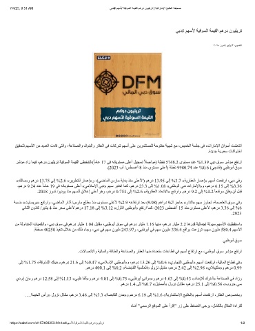 يد مإ نإ»و ﻢھرد 12.58 ﻰﻟإ %1.13 «ﻲﺒظ ﺎﻔﻟأ»و ﻢھرد 4.01 ﻰﻟإ %0.75 «ﻲﺒظﻮﺑأ ﺊﻧاﻮﻣ»و ﻢھرد 4.63 ﻰﻟإ %0.43 «داﺪﻣﻺﻟ كﻮﻧدأ» ﺔﻋﺎﻨﺼﻟا ﻲﻓ دازو