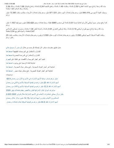 رﺎﯾﻠﻣ 1.165 ﺔﻣﯾﻘﺑ مﮭﺳ نوﯾﻠﻣ 336.429 مﺟﺣﺑ تﻼﻣﺎﻌﺗ طﺳو ،ﺔطﻘﻧ 9980 ىوﺗﺳﻣ ﻰﻟإ ﺔﺋﺎﻣﻟﺎﺑ 0.61 ﺔﺑﺳﻧﺑ ﺔﯾﻟﺎﻣﻟا قاروﻸﻟ ﻲﺑظوﺑأ قوﺳ رﺷؤﻣ ﻊﻔﺗرا ﺎﻣﻛ