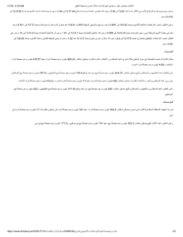 ﻲﻓو .مھرد 15 ﻰﻟإ %13.6 ﺔﺑﺳﻧﺑ «ةدﺣﺗﻣﻟا ﺔﯾذﻏﻷا» مﺛ ،مھرد 1.87 ﻰﻟإ %14.7 ﺔﺑﺳﻧﺑ «ﺔﺿﺑﺎﻘﻟا مﯾﻌﻧﻟا» هﻼﺗ ،مھرد 0.989 ﻰﻟإ %16.35 ﺔﺑﺳﻧﺑ «ﺎﯾازﻣﻟا» مﮭﺳ ،ﻲﺑدﺑ ﺔﻌﻔﺗرﻣﻟا مﮭﺳﻷا ﺔﻣدﻘﻣ ﻲﻓ نﺎﻛو