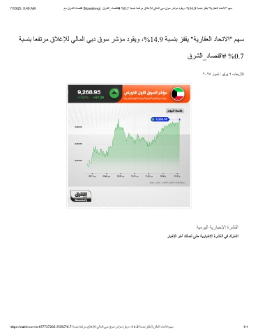 7/10/25, 9:48 AM ﻊﻣ قرﺷﻟا دﺎﺻﺗﻗا Bloomberg | قرﺷﻟا_دﺎﺻﺗﻗا# %0.7 ﺔﺑﺳﻧﺑ ﺎﻌﻔﺗرﻣ قﻼﻏﻺﻟ ﻲﻟﺎﻣﻟا ﻲﺑد قوﺳ رﺷؤﻣ دوﻘﯾو ،%14.9 ﺔﺑﺳﻧﺑ زﻔﻘﯾ "ﺔﯾرﺎﻘﻌﻟا دﺎﺣﺗﻻا" مﮭﺳ