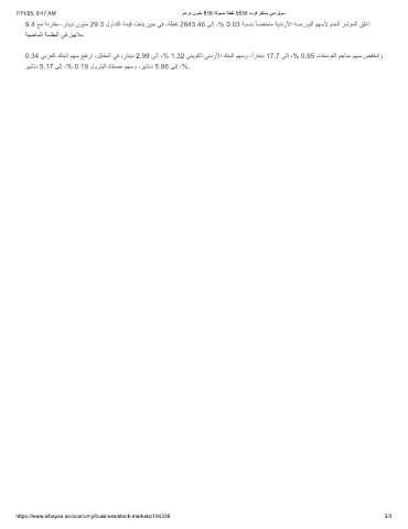 9.4 ﻊﻣ ﺔﻧرﺎﻘﻣ ،رﺎﻧﯾد نوﯾﻠﻣ 29.3 لوادﺗﻟا ﺔﻣﯾﻗ تﻐﻠﺑ نﯾﺣ ﻲﻓ ،ﺔطﻘﻧ 2843.46 ﻰﻟإ ،% 0.03 ﺔﺑﺳﻧﺑ ً ﺎﺿﻔﺧﻧﻣ ﺔﯾﻧدرﻷا ﺔﺻروﺑﻟا مﮭﺳﻷ مﺎﻌﻟا رﺷؤﻣﻟا ﻖﻠﻏأ
