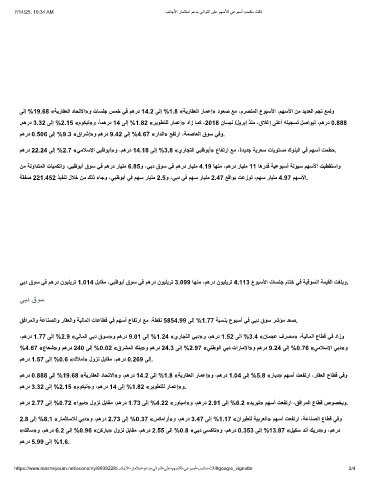 2.8 ﻰﻟإ %8.1 «رﺎﻣﺛﺗﺳﻼﻟ ﻲﺑد»و ،مھرد 2.73 ﻰﻟإ %0.37 «سﻛﻣارأ»و ،مھرد 3.47 ﻰﻟإ %1.17 «نارﯾطﻠﻟ ﺔﯾﺑرﻌﻟا» مﮭﺳأ تﻌﻔﺗرا ،ﺔﻋﺎﻧﺻﻟا عﺎطﻗ ﻲﻓو