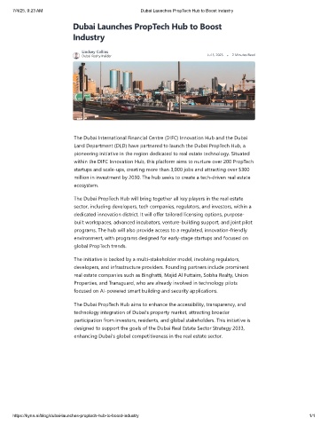 7/4/25, 9:23 AM Dubai Launches PropTech Hub to Boost Industry