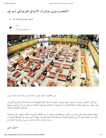 7/14/25, 10:25 AM «عوﺑﺳأ ﻲﻓ ﺔﯾﺑرﻌﻟا قاوﺳﻷا تارﺷؤﻣ نﯾزﯾ «رﺿﺧﻷا