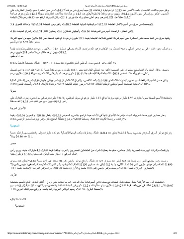 ﺎﻤﯿﻓو ،%0.36 ﻦﯾﺮﺤﺒﻟاو ،%0.56 ﺮﻄﻗو ،%0.35 يدﻮﻌﺴﻟا «ﻲﺳﺎﺗ» ﻊﺟاﺮﺗ ﺚﯿﺣ ،ءادﻷا ﻲﻓ ً ﺎﻨﯾﺎﺒﺗ قاﻮﺳﻷا تاﺮﺷﺆﻣ تﺪﮭﺷ ،ﺔﯿﺑﺮﻌﻟا تﺎﺻرﻮﺒﻟا ىﻮﺘﺴﻣ ﻰﻠﻋو