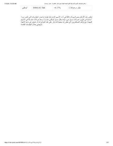 ﻲﺒظﻮﺑأ 10064.81 ﺔﻄﻘﻧ +0.17% 1.34 ﻢھرد رﺎﯿﻠﻣ