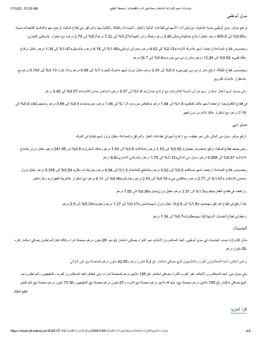 عﺎﻔﺗرا لﺑﺎﻘﻣ ،مھرد 1.34 ﻰﻟإ %1.47«لﯾﺗﺳﻣأ»و مھرد 4.14 ﻰﻟإ %1.66«ﻲﺑظوﺑأ ﺊﻧاوﻣ»و مھرد 4.62 ﻰﻟإ %2.12«دادﻣﻺﻟ كوﻧدأ» مﮭﺳأ تﻌﺟارﺗ ﺔﻋﺎﻧﺻﻟا عﺎطﻗ صوﺻﺧﺑو