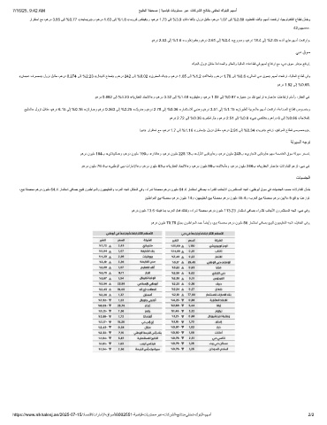 «نﺎﻣﺟﻋ فرﺻﻣ» لوزﻧ لﺑﺎﻘﻣ ،مھرد 0.274 ﻰﻟإ %2.23 «لﺎﺗﯾﺑﺎﻛ عﺎﻌﺷ»و مھرد 242 ﻰﻟإ %0.02 «قرﺷﻣﻟا كﻧﺑ»و ،مھرد 1.65 ﻰﻟإ %1.2 «كﻼﻣأ»و مھرد 1.76 ﻰﻟإ %0.6 «ﻲﻟﺎﻣﻟا ﻲﺑد قوﺳ» مﮭﺳأ تﻌﻔﺗرا ،ﺔﯾﻟﺎﻣﻟا عﺎطﻗ ﻲﻓو