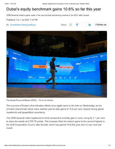 7/2/25, 11:07 AM                        Dubai's equity benchmark gains 10.6% so far this year | Khaleej Times