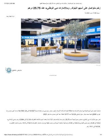 7/17/25, 9:06 AM ﺞﯾﻠﺧﻟا ﺔﻔﯾﺣﺻ | مھرد 25.75 دﻧﻋ «ﻲﻧطوﻟا ﻲﺑد تارﺎﻣﻹا»و ..كوﻧﺑﻟا مﮭﺳأ ﻰﻠﻋ لﺻاوﺗﻣ مﺧز