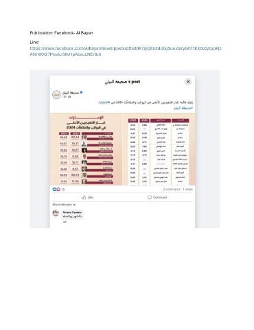 Publication: Facebook- Al Bayan Link: https://www.facebook.com/AlBayanNews/posts/pfbid0P7iyQ8nXdUGjSuoi4aryGhTTKXbtdyzpoRjz A6hXKX27Mevkz38vHpAbsuLNErBol