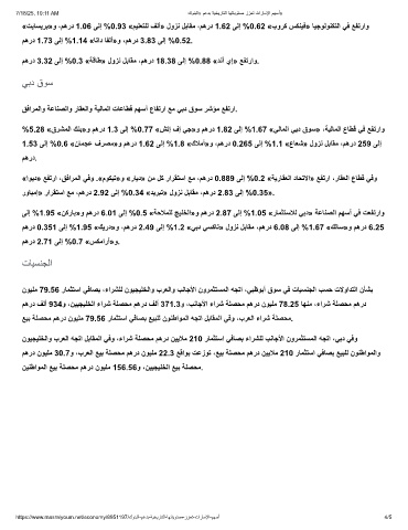 ﻰﻟإ %1.95 «نﻛرﺎﺑ»و مھرد 6.01 ﻰﻟإ %0.5 «ﺔﺣﻼﻣﻠﻟ ﺞﯾﻠﺧﻟا»و مھرد 2.87 ﻰﻟإ %1.05 «رﺎﻣﺛﺗﺳﻼﻟ ﻲﺑد» ﺔﻋﺎﻧﺻﻟا مﮭﺳأ ﻲﻓ تﻌﻔﺗراو
