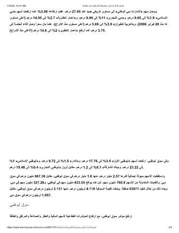 مھرد 15.48 ﻰﻟإ %0.4 «يرﺎﺟﺗﻟا ﻲﺑظوﺑأ» لوزﻧ لﺑﺎﻘﻣ ،مھرد 1.2 ﻰﻟإ %8.1 «ﺔﻗرﺎﺷﻟا كﻧﺑ»و ،مھرد 23.22 ﻰﻟإ.