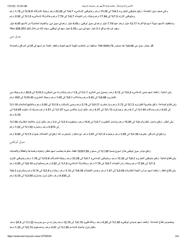 ،مھرد 24.9 ﻰﻟإ %1.22 «بورﺟ ﻲﺳ يد مإ نإ»و مھرد 12.18 ﻰﻟإ %0.16 «ﻲﺑظ ﺎﻔﻟأ»و ،مھرد 4.28 ﻰﻟإ %1.66 «ﻲﺑظوﺑأ ﺊﻧاوﻣ» مﮭﺳأ تﻌﻔﺗرا ،ﺔﻋﺎﻧﺻﻟا عﺎطﻗ صوﺻﺧﺑو