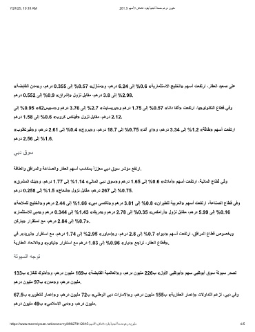 «رﺎﻣﺛﺗﺳﻼﻟ ﻲﺑد»و مھرد 0.344 ﻰﻟإ %1.43 «كﯾرد»و مھرد 2.78 ﻰﻟإ %0.35 «سﻛﻣارأ» لوزﻧ لﺑﺎﻘﻣ ،مھرد 5.99 ﻰﻟإ %0.16