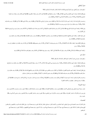 «لﯾﺗﺳﻣأ»و مھرد 12.08 ﻰﻟإ %1.68 «ﻲﺑظ ﺎﻔﻟأ»و ،مھرد 4.28 ﻰﻟإ %2.15 «ﻲﺑظوﺑأ ﺊﻧاوﻣ»و ،مھرد 4.63 ﻰﻟإ %1.3 «دادﻣﻺﻟ كوﻧدأ» مﮭﺳأ تﻌﻔﺗرا ،ﺔﻋﺎﻧﺻﻟا عﺎطﻗ صوﺻﺧﺑو