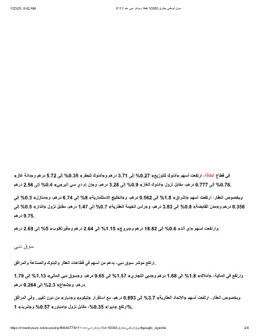 1.79 ﻰﻟإ %1.13 «ﻲﻟﺎﻣﻟا ﻲﺑد قوﺳ»و ،مھرد 9.65 ﻰﻟإ %1.57 «يرﺎﺟﺗﻟا ﻲﺑد»و مھرد 1.68 ﻰﻟإ %1.8 «كﻼﻣأ» ،ﺔﯾﻟﺎﻣﻟا ﻲﻓ ﻊﻔﺗراو